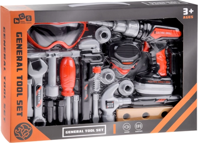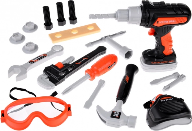 - Kompletne wyposażenie: Zestaw zawiera wiertarkę, młotek, klucze i ochronne okulary, co umożliwia różnorodne rodzaje zabaw w naprawy.