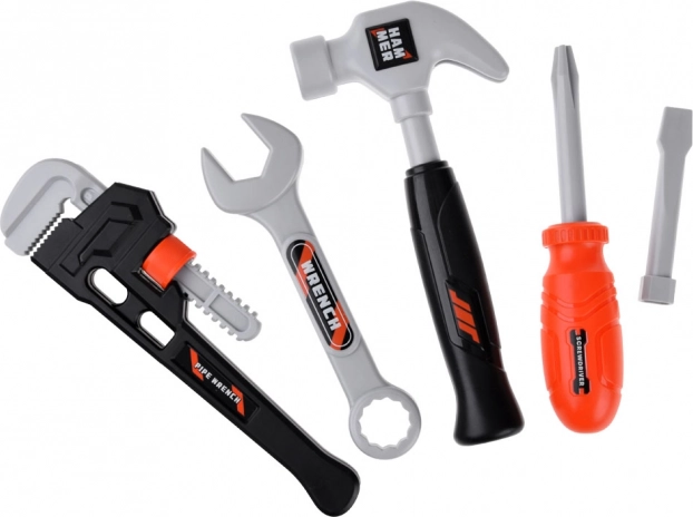 Dla każdego małego majsterkowicza, który chce wypróbować swoje umiejętności naprawcze, ten duży zestaw narzędzi jest idealnym wyborem. Zestaw składa się z plastikowych narzędzi w trzech kolorystycznych zestawieniach: czarny, pomarańczowy i szary, oferuje realistyczne kształty, które pobudzają do twórczej i pomysłowej zabawy. Codzienne naprawy staną się zabawą, czy to przyczepianie kółka do samochodziku, czy dokręcenie śrubki od domku dla lalek.