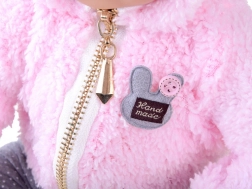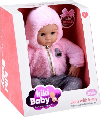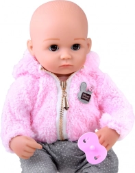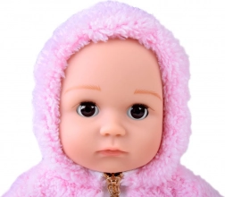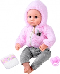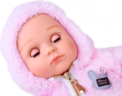 Lalka wygląda jak noworodek. Ma miękkie materiałowe ciałko oraz głowę, ręce i nogi z twardej gumy. Gdy położysz lalkę, jej oczy się zamkną. Jak prawdziwe niemowlę nie ma włosków na głowie, ale przed zimnem chroni ją ciepła, przyjemna różowa bluza z kapturem. Cały strój uzupełniają stylowe szare legginsy w kropki.
