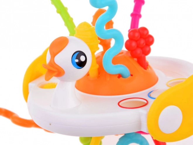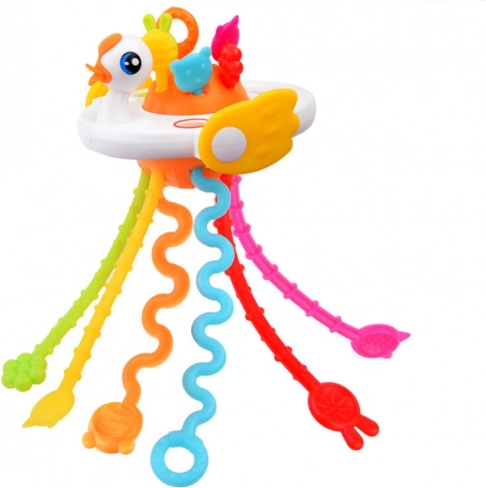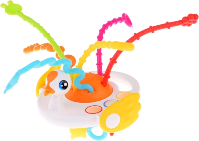 Ta kolorowa sensoryczna zabawka w kształcie łabędzia wspiera naturalny rozwój zmysłów i umiejętności Twojego maluszka. Dzięki połączeniu różnych powierzchni, miękkich przycisków oraz sznureczków do ciągnięcia z dźwiękiem i wibracją dzieci odkrywają nowe bodźce, trenują chwyt i wzmacniają koordynację ręka–oko.
