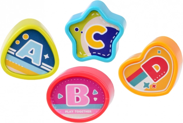 - interaktywna kostka, 4 kształty (serduszko, gwiazdka, trójkąt, owal)