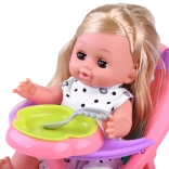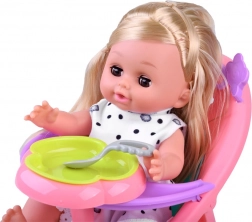 Lalkę posadzisz w krzesełku ze stolikiem, użyjesz miseczki i sztućców. Świetne do nauki opieki i zasad przy stole.