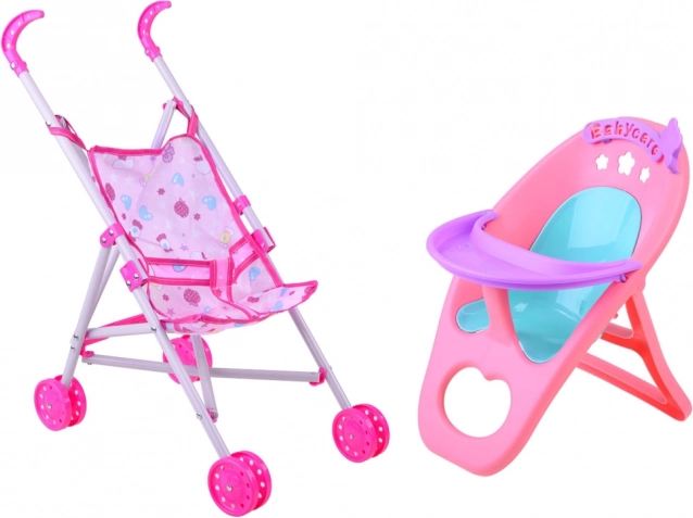 Do krzesełka do karmienia lalkę bezpiecznie posadzisz i skorzystasz z miseczki, sztućców i butelki. Po jedzeniu niemowlę może skorzystać z nocnika, a następnie trafić do wygodnej kołyski. Na spacer przyda się lekki składany wózek typu „parasolka” z pasami bezpieczeństwa i uroczą różową tapicerką w serduszka i kwiatuszki. Zestaw idealny do rozwoju motoryki, empatii i zabaw w odgrywanie ról.