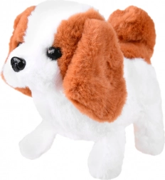 Piesek idzie do przodu, szczeka, merda ogonem, a przy głaskaniu po głowie wydaje delikatne dźwięki szczeniaka – idealny do interaktywnej zabawy.