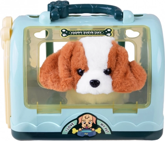 Praktyczny przenośny transporter z okienkiem i serduszkowymi otworami wentylacyjnymi pozwala dzieciom zabrać pieska wszędzie ze sobą.