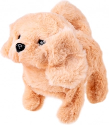 Mięciutki beżowy piesek chodzi, szczeka, merda ogonem i po pogłaskaniu wydaje szczenięce odgłosy – zupełnie jak prawdziwy szczeniaczek.