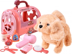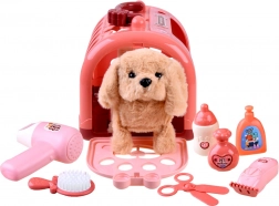Odkryj uroczy zestaw do opieki nad pupilem: interaktywny pluszowy piesek w przenośnym boxie oraz bogate akcesoria do zabawy w salon. Piesek potrafi iść do przodu, szczekać, merdać ogonem i po pogłaskaniu wydaje szczenięce odgłosy. W zestawie znajduje się przenośna transporterka, grzebień, nożyczki, suszarka i inne dodatki – idealne do kreatywnej i realistycznej zabawy dla dzieci od 3 lat.