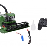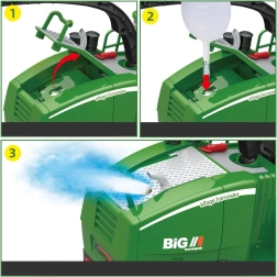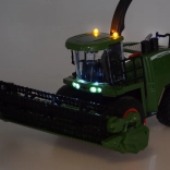 Największą atrakcją jest realistyczna funkcja dymu – wystarczy uzupełnić wodę z dołączonej buteleczki, aktywować dym na pilocie, a z wydechu wydobędzie się delikatna para z podświetleniem. Ruchomy heder ma obracający się nagarniacz, można go podnosić i opuszczać, ramię wysypu obraca się o 360°. Tylna oś jest napędzana i umożliwia regulację zbieżności. Szerokie gumowe koła zapewniają stabilność i trakcję.