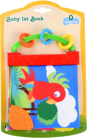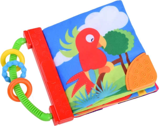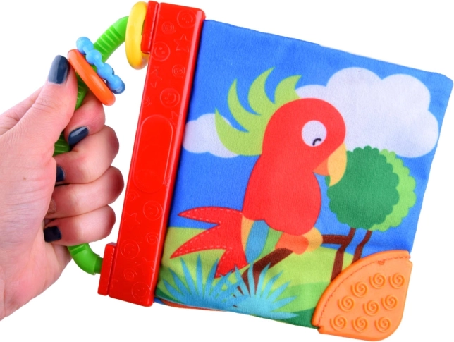 Odkryj pierwszą materiałową książeczkę dla najmłodszych, która wspiera rozwój sensoryczny, naukę kolorów i kształtów oraz rozwój motoryki małej. Mięciutkie tkaniny, szeleszczące strony, piszczałki, lusterko i gryzaki zaciekawią maluszka na długie chwile. Praktyczny plastikowy uchwyt z kolorowymi kółeczkami ułatwia trzymanie i przypięcie do wózka lub fotelika samochodowego.