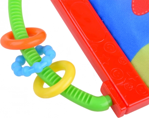 Lekka i poręczna książeczka jest idealna w domu i w podróży – łatwo zawiesisz ją za plastikowy uchwyt z kolorowymi kółeczkami na wózku lub foteliku samochodowym. Materiał łatwo utrzymać w czystości i jest odpowiedni już od pierwszych dni życia.