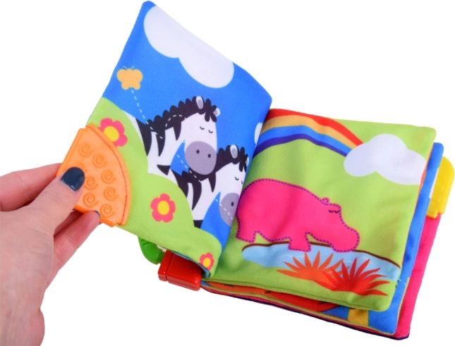 Szeleszczące strony, piszczałki i lusterko stymulują wzrok, słuch i dotyk. Maluszek bawi się, a jednocześnie uczy rozpoznawać kolory, kształty i zwierzątka.