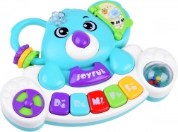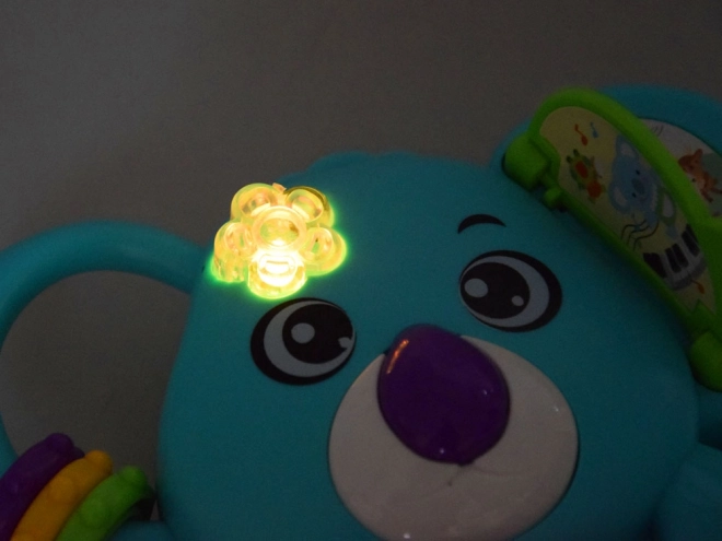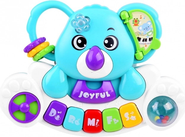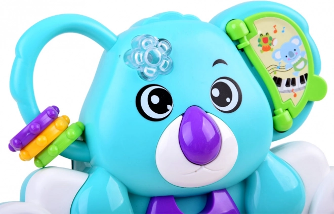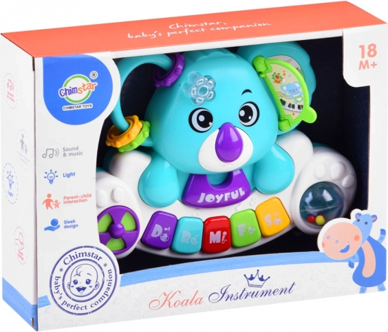 To kolorowe dziecięce pianinko z motywem koali dostarcza wielu bodźców sensorycznych i świetnej zabawy. Pomaga rozwijać słuch (melodie, dźwięki), wzrok (migające, zmieniające kolory światełko) oraz małą motorykę (kółeczka, koraliki, elementy obrotowe). Dzięki kompaktowym wymiarom idealnie mieści się w małych rączkach i sprawdza się w podróży.