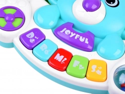 Przełączaj między skalą DO–SOL, wesołymi melodiami, dźwiękami zwierząt i zabawnymi efektami – dzieci rozwijają poczucie rytmu i wrażliwość słuchową.
