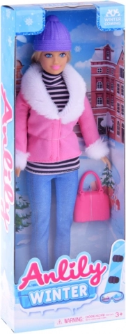 Stylowa lalka ANLILY w zimowym stroju ucieszy każdą małą miłośniczkę mody. Ma długie blond włosy do czesania i stylizacji, nosi różową zimową kurteczkę z białym futerkiem, fioletową czapkę, niebieskie legginsy, a całość uzupełnia różowa torebka. Dzięki ruchomym kończynom jest idealna do kreatywnej zabawy i opowiadania historii.