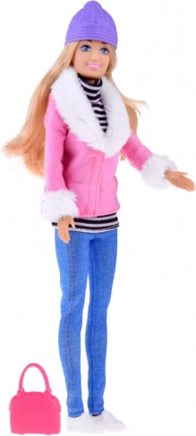 Dzięki ruchomym kończynom lalkę można łatwo posadzić, postawić lub stylowo zaaranżować. Różowa torebka i sportowe sneakersy dodają zestawowi charakteru, więc zabawa w pokaz mody lub zimowy spacer może się zacząć.