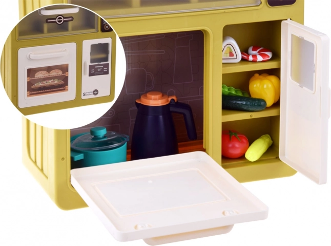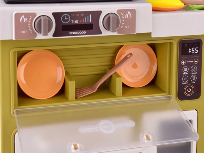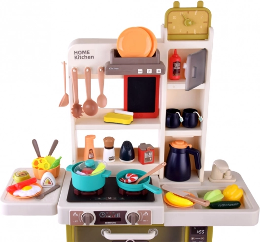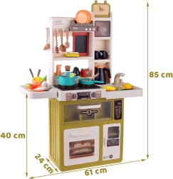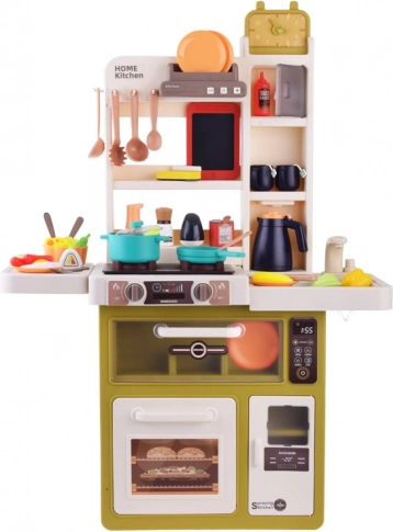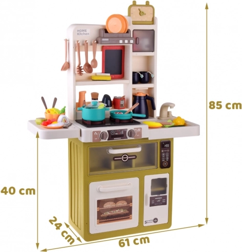 Ta interaktywna kuchnia zapewnia dzieciom autentyczne wrażenia z gotowania. Wyposażona jest w kuchenkę z dwoma palnikami, piekarnik, lodówkę, zmywarkę, zlew z działającym kranem w obiegu zamkniętym oraz górne półki z haczykami. Po napełnieniu zbiorniczka (ok. 40 ml) z jednego palnika podczas gotowania unosi się realistyczna para, a palniki podświetlają się. Okap oferuje melodie i dźwięki, które jeszcze bardziej ożywiają zabawę.