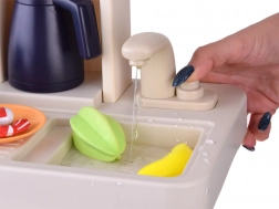 Zlew z kranem pompuje wodę w obiegu zamkniętym. Dzieci mogą „myć” produkty i naczynia bez bałaganu i z maksymalną frajdą.