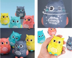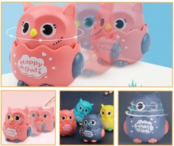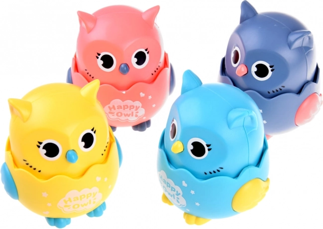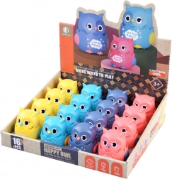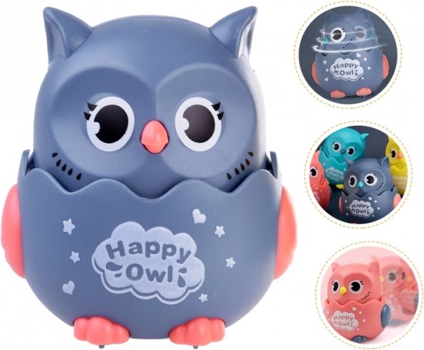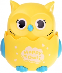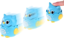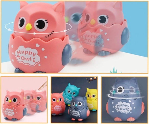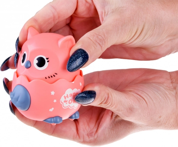 Kolorowa plastikowa sówka na kółkach zapewnia zabawę dla najmłodszych. Wystarczy położyć ją na równej powierzchni, wcisnąć główkę, a sówka pojedzie do przodu. Dzięki kompaktowemu rozmiarowi do dziecięcej rączki jest idealna na pierwsze zabawy, wspiera ruch, raczkowanie i koordynację. Po przekręceniu główki słychać przyjemny grzechot, który angażuje zmysły dziecka i może działać jak zabawka antystresowa.