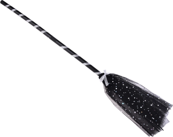 - Spiczasty czarny kapelusz, puszysta spódnica na gumce, składana miotła
