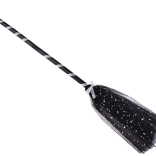 Składana miotła z czarno-białym spiralnym wzorem i ozdobnymi frędzlami doda kostiumowi figlarnego charakteru.