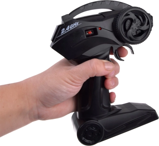 Zdalne sterowanie działa na częstotliwości 2,4 GHz, co zapewnia stabilne połączenie i precyzyjne prowadzenie pojazdu.