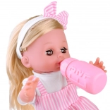 Ta urocza interaktywna lalka jest idealna dla każdego dziecka, które chce bawić się w mamę. Jej długie blond włosy można czesać i układać w różnych fryzury. Duże brązowe oczy zamykają się, gdy lalka leży, co dodaje realizmu. Lalka potrafi mówić, śmiać się i płakać, dlatego zabawa z nią jest inspirująca i rozwijająca.