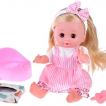 Lalka jest ubrana w piękne białe i różowe sukienki z kwiatowym wzorem i białą bluzką. Jest wyposażona w funkcję moczenia, co umożliwia dzieciom naukę opieki nad niemowlęciem. Zapewnia realistyczne wrażenia dzięki główce, rękom i nogom z twardej gumy.