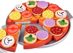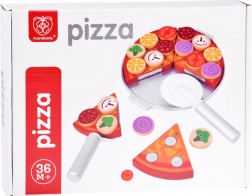 Ten drewniany zestaw do pizzy oferuje dzieciom możliwość stania się szefem kuchni w własnej pizzerii. Z 27 drewnianymi kawałkami, w tym różnorodnymi kolorowymi akcesoriami, dzieci mogą tworzyć i serwować pizzę według własnej fantazji. Kawałki pizzy łączą się na rzep, co umożliwia łatwe krojenie i ponowne składanie.