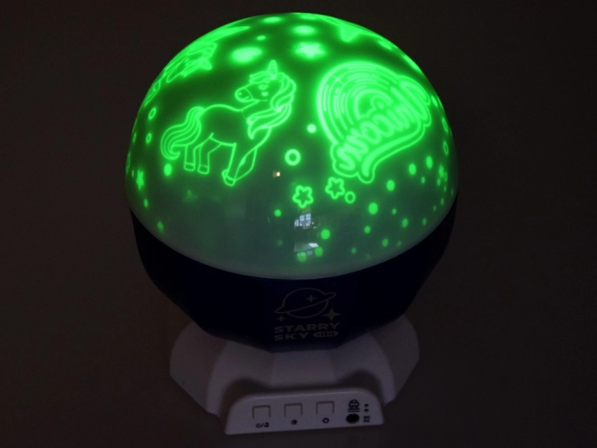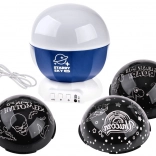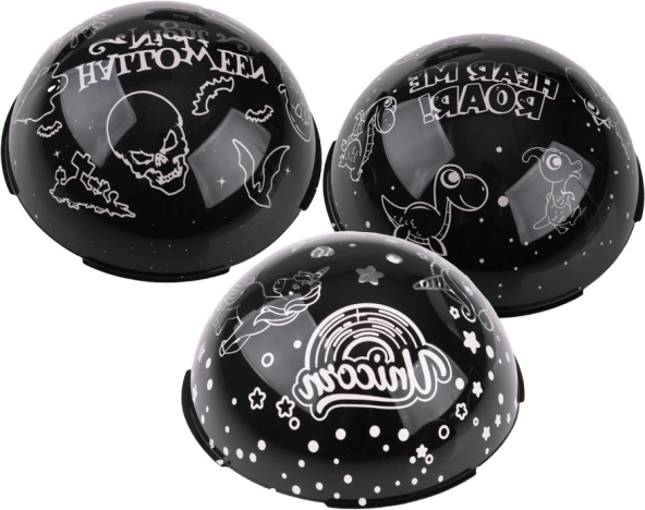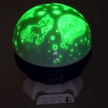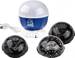 Projektor jest wyposażony w bazę LED oraz trzy wymienne kopuły z motywem Halloween, Jednorożca i Dinozaurów. Każda kopuła oferuje różne wzory, które dopasowują atmosferę w pokoju. W zestawie znajduje się kabel USB do łatwego zasilania, a także możliwość użycia 3× AA (baterie nie są dołączone).