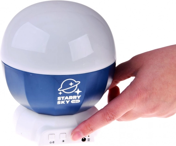 Projektor wyposażono w prosty panel sterowania z przyciskami do włączania/wyłączania, zmiany trybu oświetlenia i aktywacji muzyki. Zasilanie możliwe jest przez USB lub za pomocą baterii.