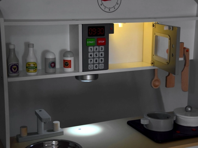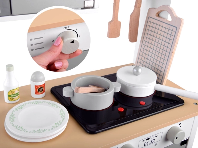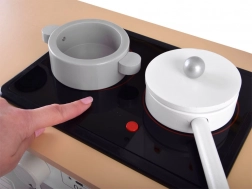 Efekty dźwiękowe gotowania, podświetlenie palników i funkcjonalny dyspenser wody zapewniają maksymalne zaangażowanie w zabawę.