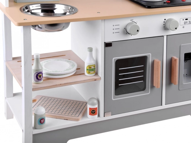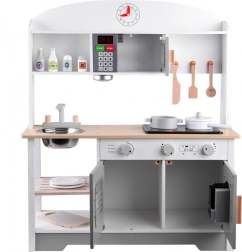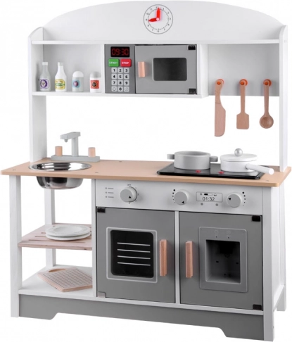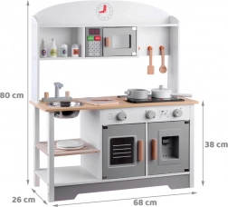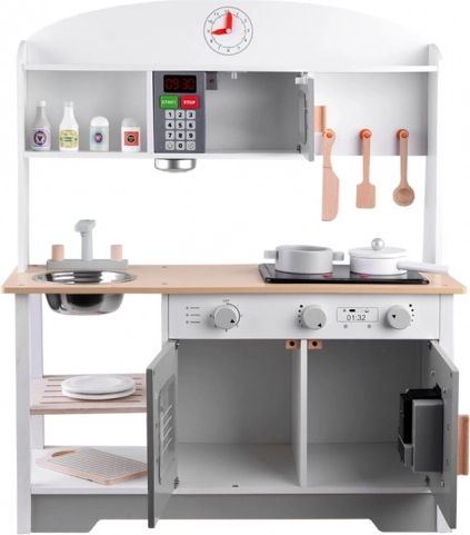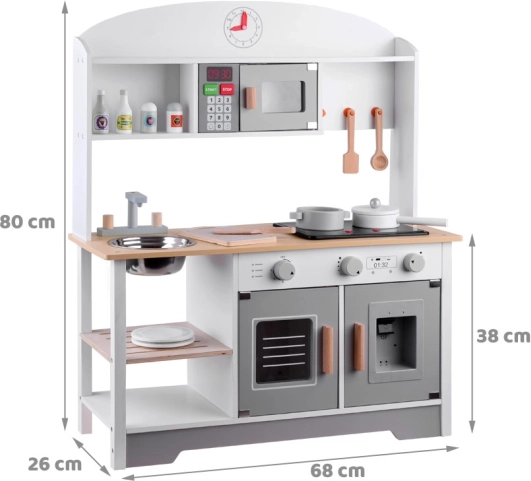 Ta kuchnia dla dzieci jest estetycznie wykonana i zapewnia nie tylko wspaniałą zabawę, ale także przyczynia się do rozwoju dziecka. Dzieci uwielbiają naśladować dorosłych i ta kuchnia pozwala im bawić się w gotowanie, sprzątanie i inne czynności związane z prowadzeniem domu.