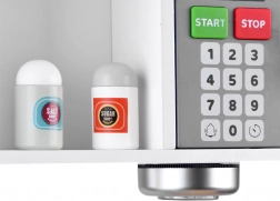 Ruchome elementy jak pokrętła, drzwi, przyciski i zegar wspierają rozwój motoryki drobnej i koordynacji ruchowej.