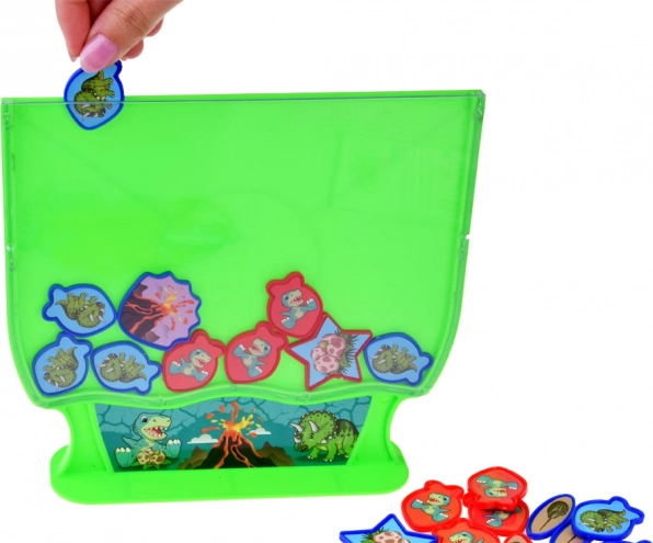 Wejdź do prehistorycznego świata i rozegraj emocjonującą partię z dziećmi i przyjaciółmi. Kolorowa plansza z motywem dinozaurów i wulkanu wraz z wytrzymałymi żetonami tworzy atrakcyjne środowisko dla każdej rozgrywki. Dzięki połączeniu losowości przy wrzucaniu i przemyślanej taktyki każde rozdanie jest inne i wciągające.
