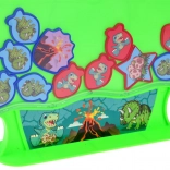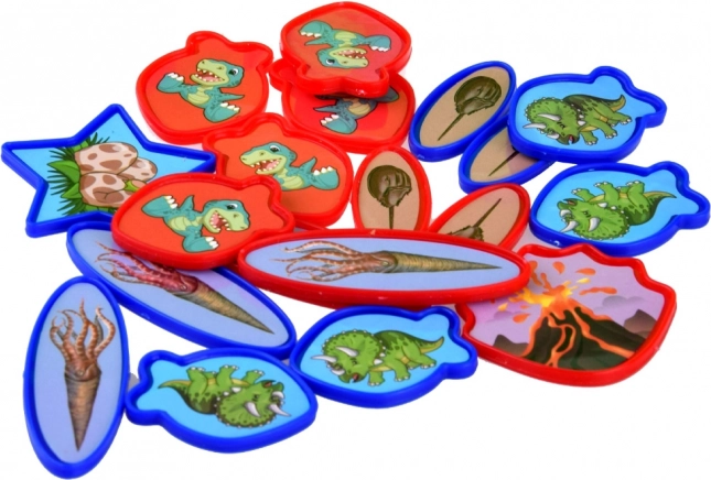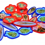 Zestaw zawiera 15 niebieskich i 15 czerwonych żetonów z atrakcyjnymi motywami dinozaurów. Przyjemny rozmiar ułatwia chwytanie i zwiększa komfort gry.