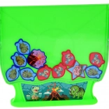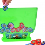 Solidna plastikowa „klatka” z motywem dinozaurów i wulkanu to główna arena rozgrywki. Wrzucane żetony bezpiecznie osadzają się w środku, dzięki czemu gra jest przejrzysta, szybka i bez zbędnego bałaganu.