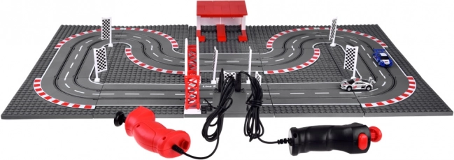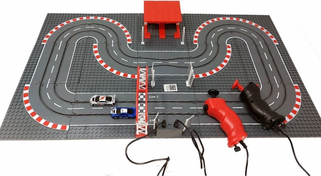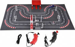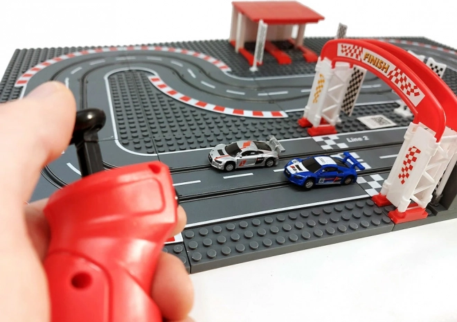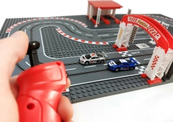 Modułowa baza z 15 płytkami oraz elementami START/META i parkingiem pozwala tworzyć wokół toru własne konstrukcje z klocków i dowolnie zmieniać układ toru.