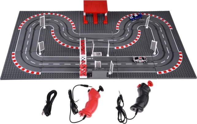 Para ręcznych kontrolerów z płynnym dozowaniem prędkości podłącza się do stacji na torze i gwarantuje precyzyjne sterowanie w zakrętach i na prostych. Dzięki zasilaniu przez USB nie są potrzebne żadne baterie – wystarczy podłączyć i startować. W zestawie znajdziesz wszystko, czego potrzeba do szybkiego startu: