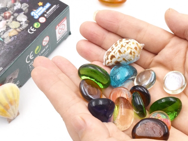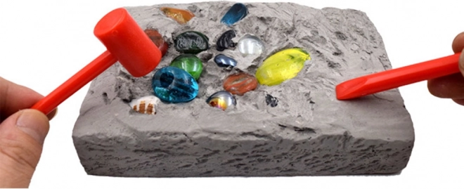 Wewnątrz gipsowego bloku znajdziesz kolorowe kamienie i kryształy gotowe do odkrycia – wystarczy młoteczek, dłuto i cierpliwość.
