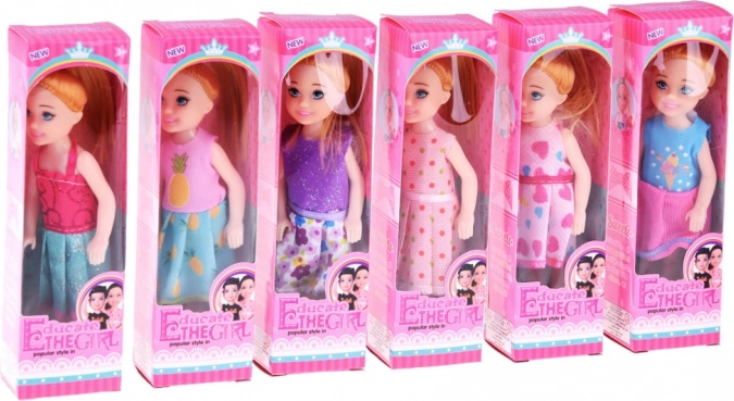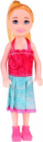 Mini lalka 13 cm w kolorowej sukience