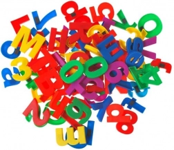 Kolorowy zestaw magnetycznych literek, cyfr i znaków matematycznych dla dzieci. Zawiera łącznie 80 elementów do zabawnej nauki na lodówce lub tablicy. Wspiera rozwój czytania, liczenia i motoryki małej. Elementy pewnie trzymają się każdej metalowej powierzchni, a wyraziste kolory zachęcają do odkrywania.