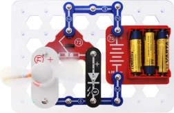 Montaż jest intuicyjny i bezpieczny dzięki plastikowej podstawie, złączom i przewodom. Zestaw wspiera praktyczną naukę przez zabawę i daje natychmiastową informację zwrotną – dzieci widzą i słyszą, co potrafi ich obwód.