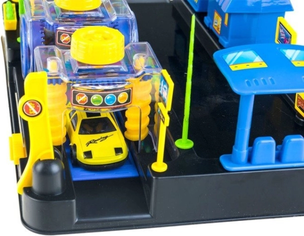 - Kompletny świat zabawy: myjnia, dystrybutor, diagnostyka, sklep i rampy.