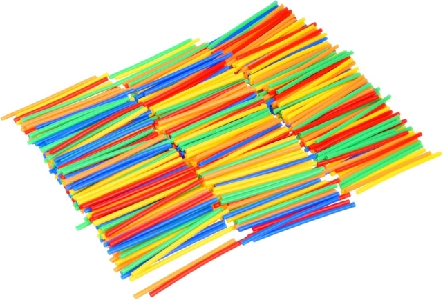 - ok. 511 słomek (długość ok. 10 cm), ok. 425 czteroramiennych łączników, ok. 60 ośmioramiennych łączników, 4 piankowe kółka (średnica ok. 3,5 cm)