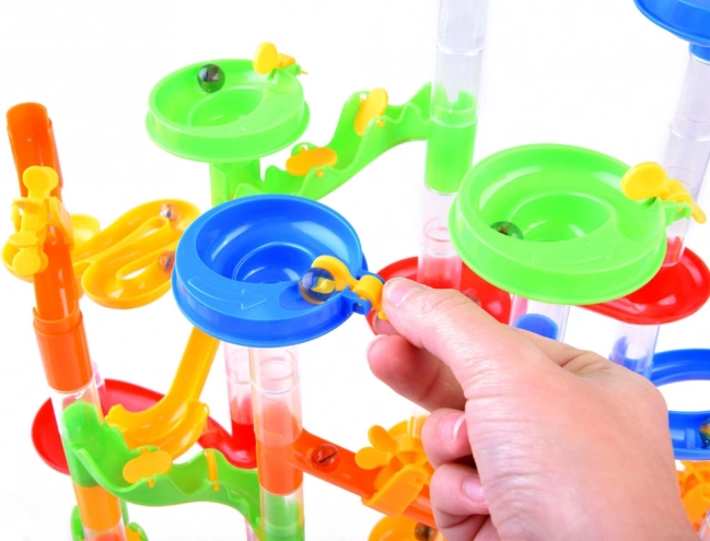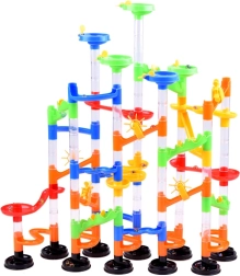 Ten tor kulkowy jest idealny dla dzieci, które uwielbiają budowanie i eksperymentowanie. Z kolorowych plastikowych elementów łatwo złożysz spirale, mosty, kominy i karuzele, tworząc oryginalne trasy, po których kulki płynnie się poruszają. Zestaw zawiera również wiele kulek, co gwarantuje dynamiczną zabawę.