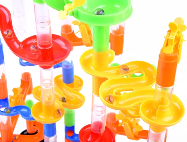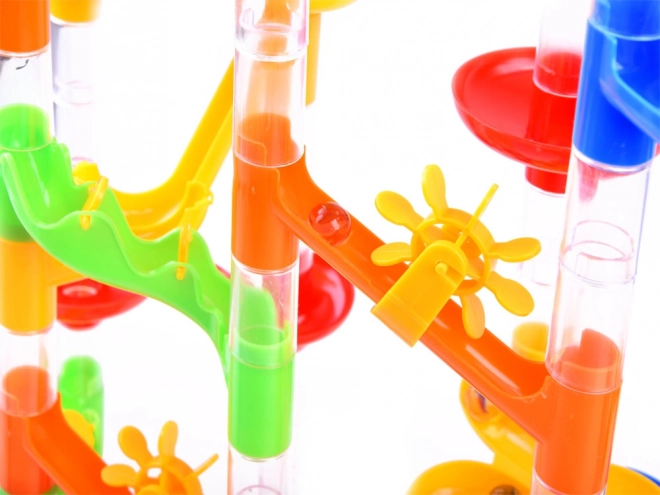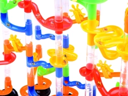 Wytrzymałe plastikowe elementy solidnie się zatrzaskują, a przezroczyste rurki zapewniają płynny ruch kulek bez zacinania.