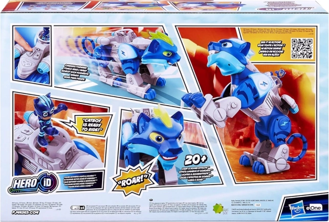 Seria zabawek PJ Masks obejmuje bohaterskie postacie, które w nocy przemieniają się w swoje superbohaterskie alter ego. Ten ryczący odważny kot jest inspirowany opowieścią o trzech małych dzieciach. Dzięki swoim ponad 20 efektom dźwiękowym i świetlnym gwarantuje nieustanne przygody.