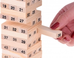 Tradycyjny sposób gry ćwiczy zręczność i strategiczne myślenie. Zostań mistrzem w balansowaniu drewnianych bloków.