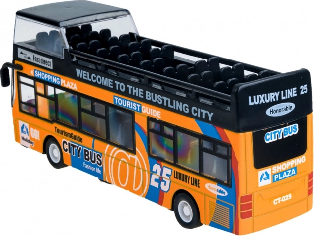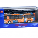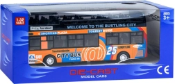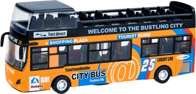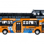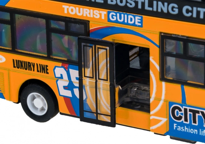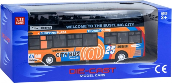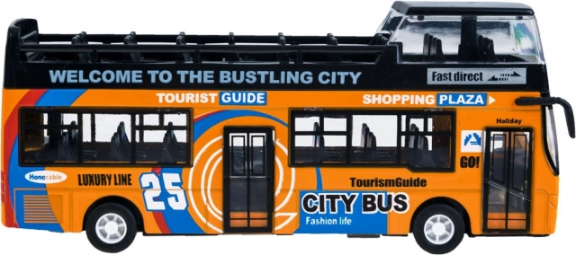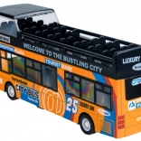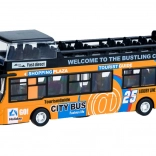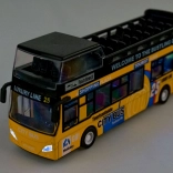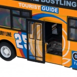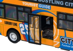 Ten szczegółowo wykonany model miejskiego piętrowego autobusu zachwyci każde dziecko. Solidne połączenie metalu i plastiku zapewnia odporność, a otwierane przesuwne drzwi i włączające się oświetlenie wnętrza dostarczają autentycznych wrażeń z jazdy.