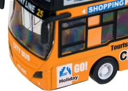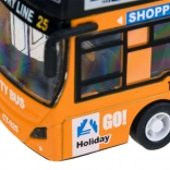 Po dociśnięciu podwozia aktywują się dźwięki rozruchu silnika, jazdy i klaksonu, a jednocześnie migają przednie światła i świeci wnętrze. Dzięki napędowi typu pull-back autobus po naciągnięciu sam rusza – idealny do samodzielnej i wspólnej zabawy.